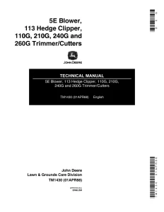 John Deere 5E Blower 113 Hedge Clipper 110G 210G 240G 260G Trimmer Cutters Technical Manual