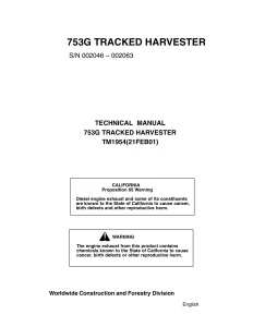 John Deere Tracked Harvester 753G TM1954 Technical Manual