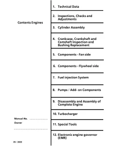 Instant download Liebherr Diesel Engines D9306 D9308 D9406 D9408 tm2224 Service Manual! MODELS COVERED IN MANUAL Liebherr Diesel Engines D9306 D9308 D9406 D9408 tm2224 Service Manual CHAPTERS COVERD IN MANUAL *1 Engine illustrations *2 Technical description *3 Engine description, engine data tag, cylinder description, direction of rotation and engine identification number *4 Engine data, adjustment…