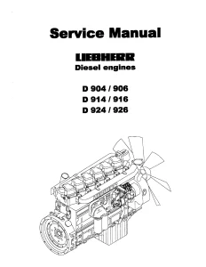 Instant download Liebherr Diesel Engines D904 D906 D914 D916 D924 D926 tm2223 Service Manual! MODELS COVERED IN MANUAL Liebherr Diesel Engines D904 D906 D914 D916 D924 D926 tm2223 Service Manual CHAPTERS COVERD IN MANUAL *1) Engine illustrations *2) Technical description *3) Engine description, engine data tag, cylinder description, direction of rotation and engine identification number…