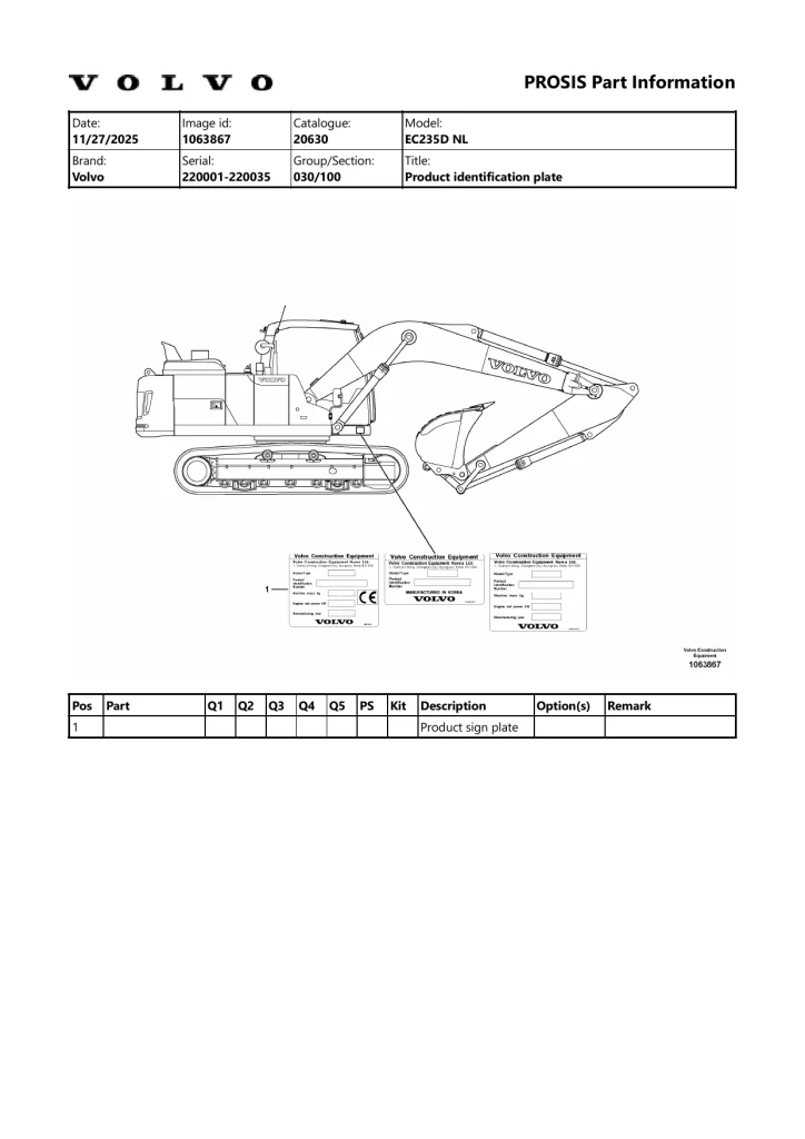 Instant download EC235D NL Volvo Excavator Part Manual!