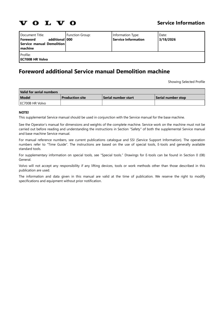 Instant download EC700B HR Volvo Excavator Service Manual!