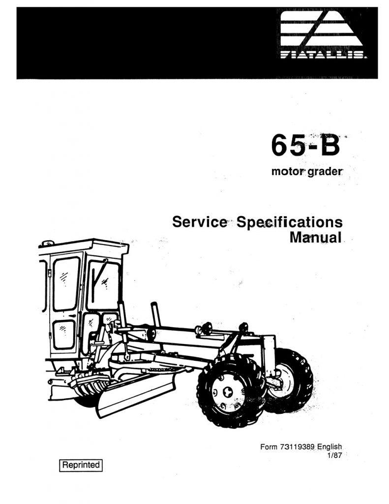 Instant download Fiatallis 65-B Motor Grader Service Specification Manual.