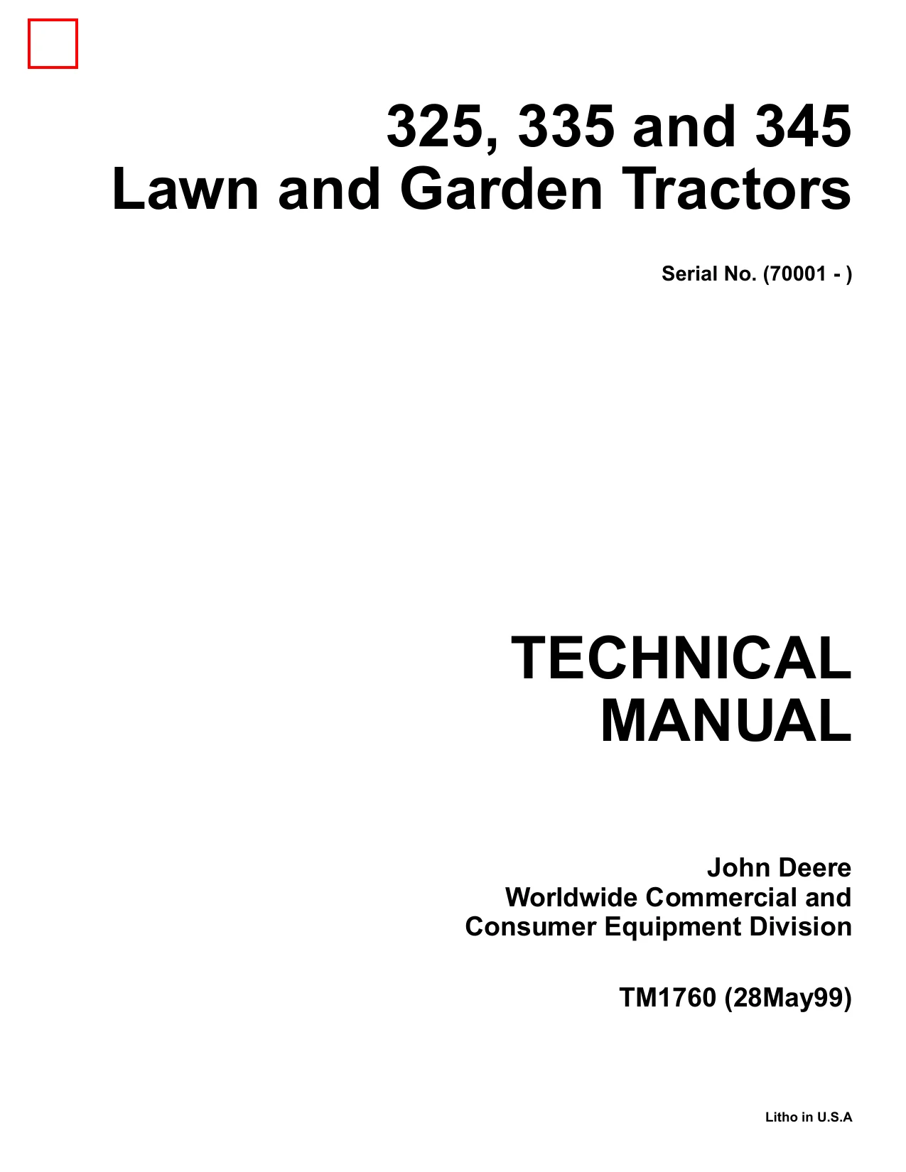 John Deere Lawn and Garden Tractors 325,335 and 345_TM1760_05.1999