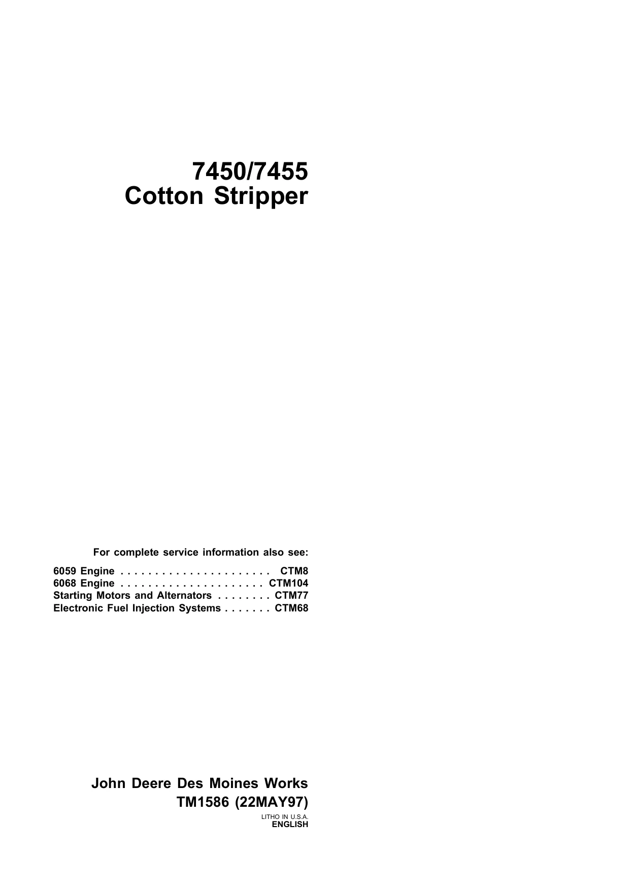 John Deere Cotton Stripper 7450 7455 TMT1586 1997 Technical Manual EN PDF smile December 18, 2025 Comments