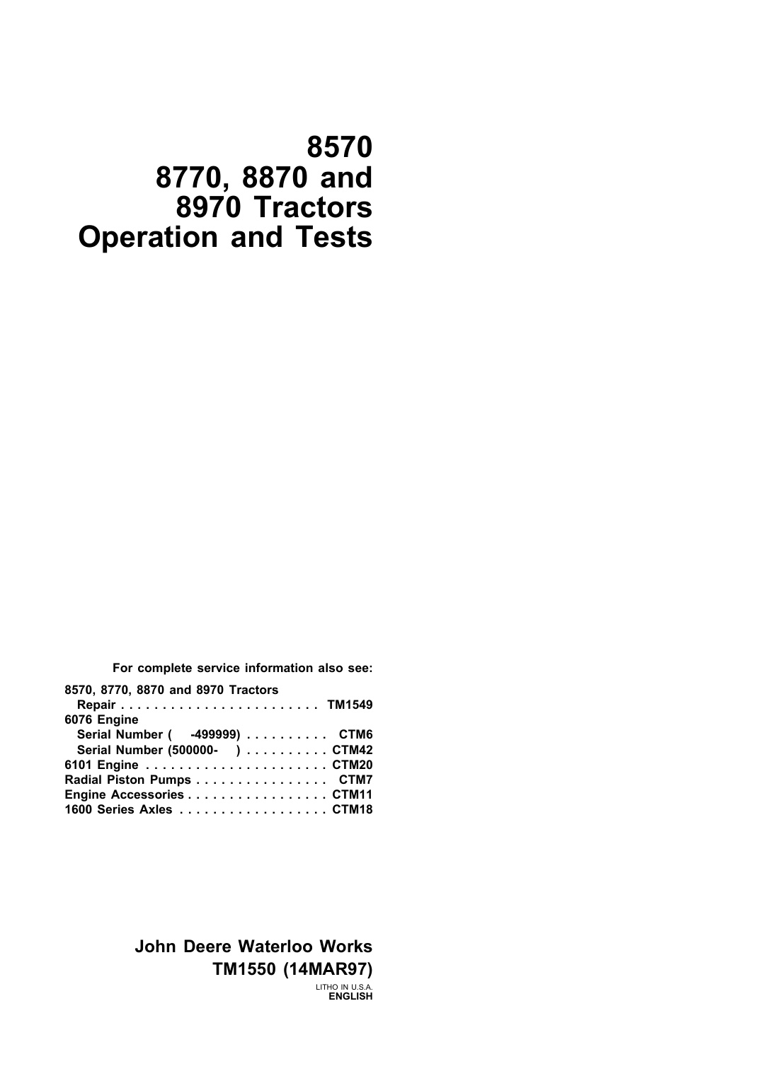 John Deere Tractors 8570 8770 8870 8970 tm1550 Operation & Test Manual EN PDF smile December 13, 2025 Comments