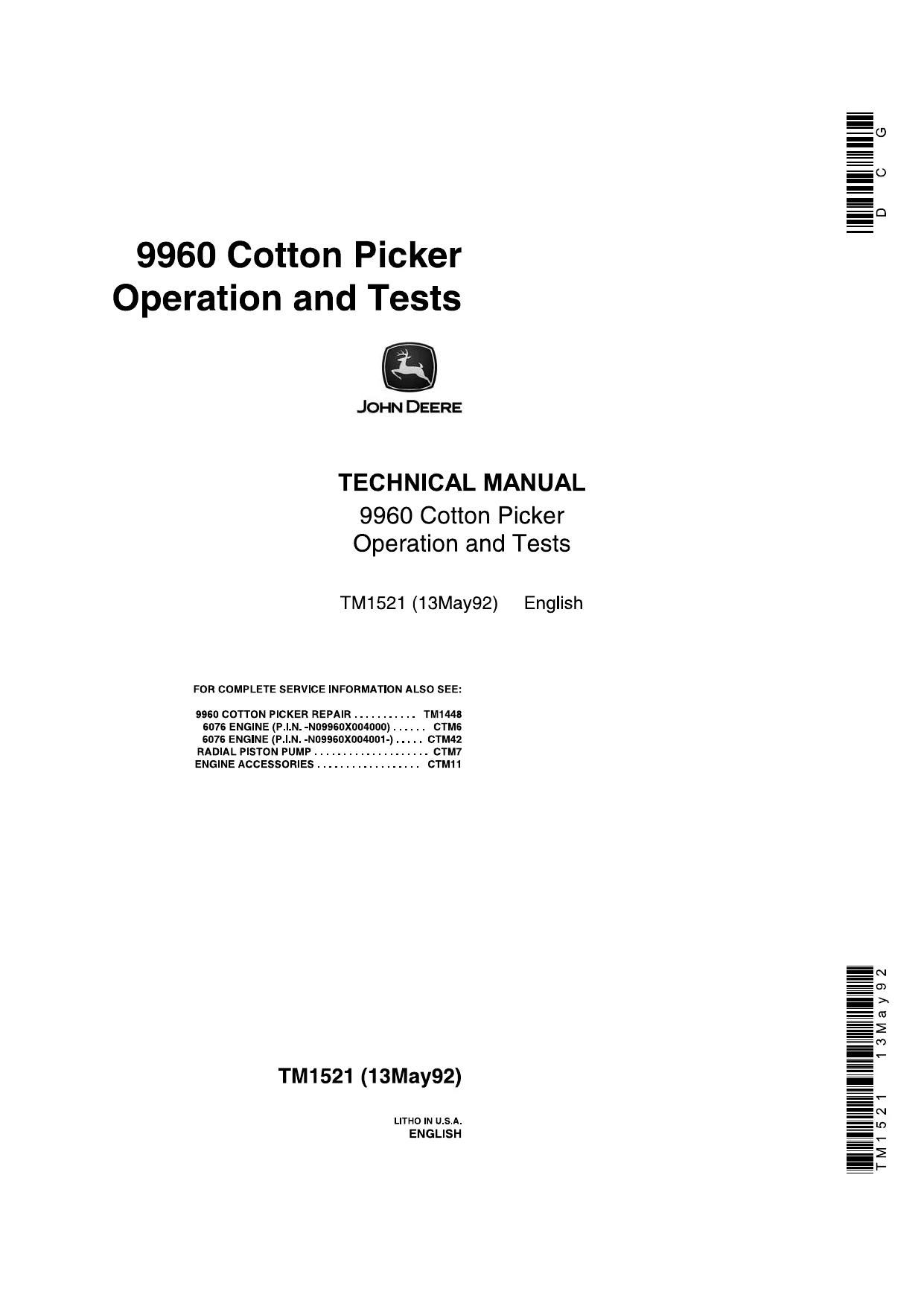 John Deere Cotton Picker 9960 TM1521 13May92 Technical Manual EN PDF smile December 18, 2025 Comments