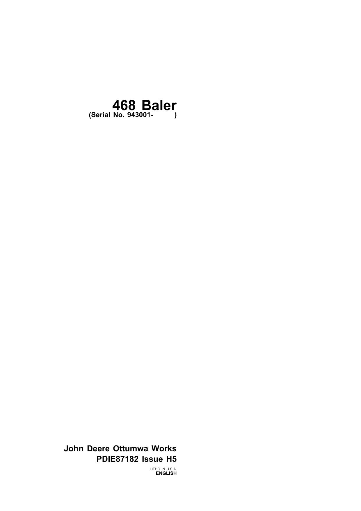 John Deere Baler 468 pdie87182 H5 Pre Delivery Instruction Manual
