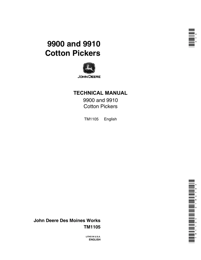 John Deere Cotton Picker 9900 9910 tm1105 Technical Manual