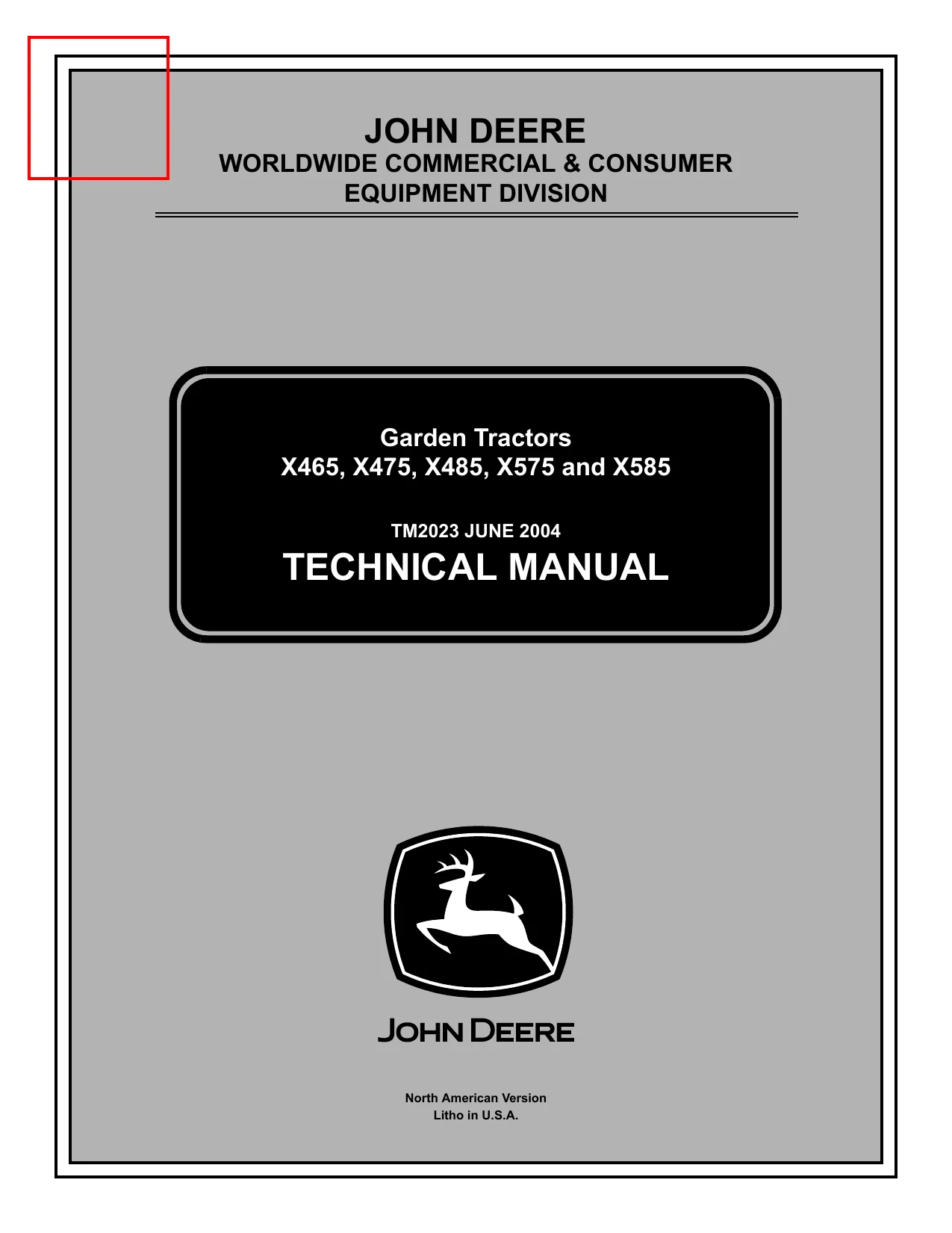John Deere Garden Tractors X465, X475, X485, X575 and X585 Technical Manual