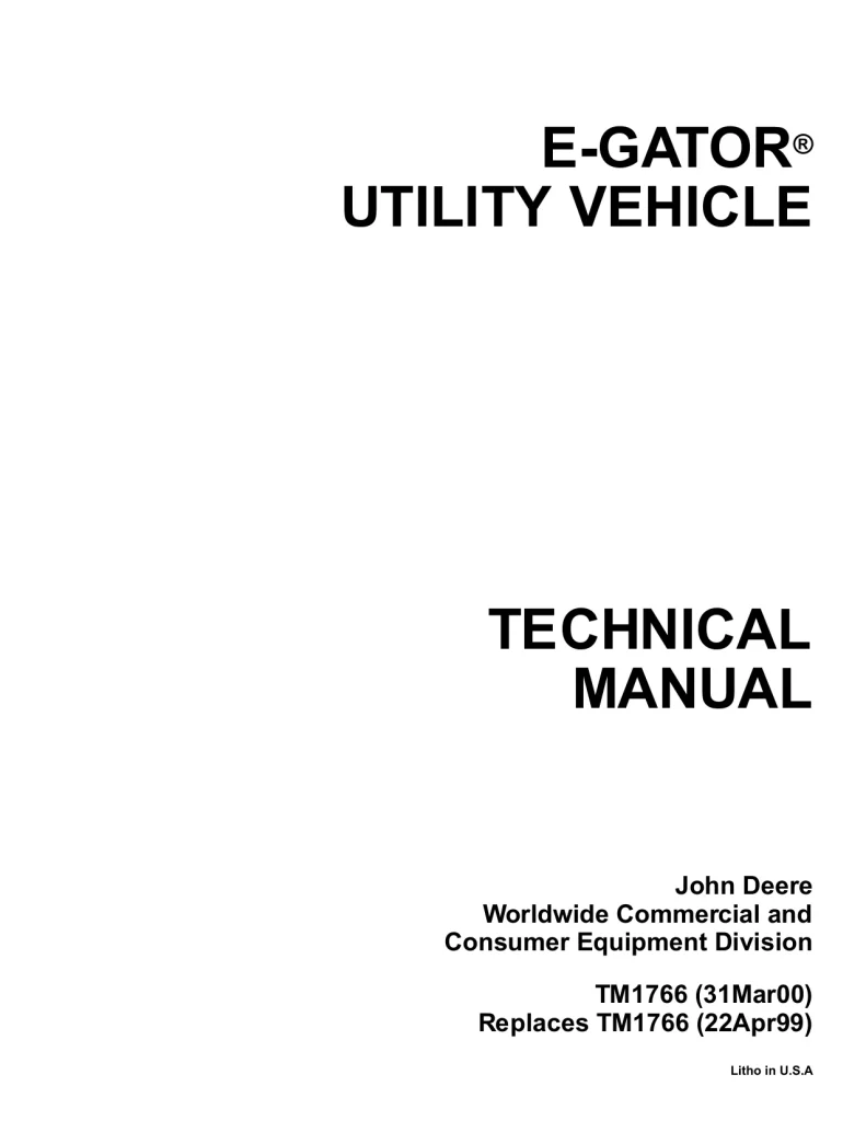 Instant download John Deere Gator Utility Vehicles E-Gator tm1766 Technical Manual!