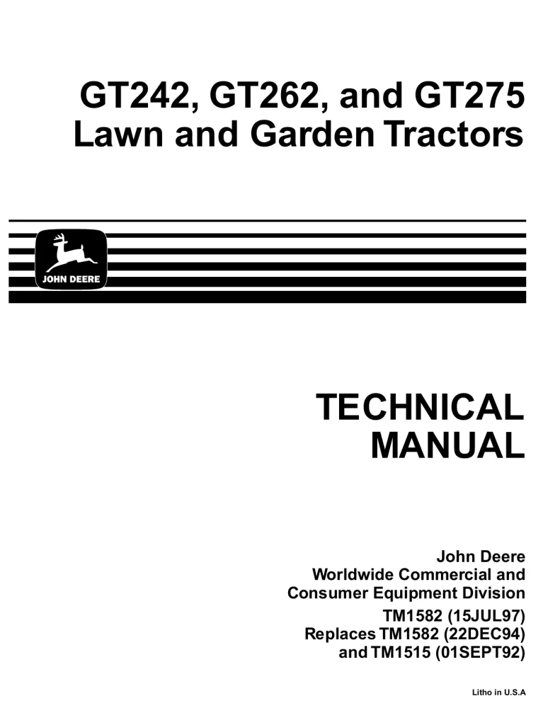 John Deere Lawn Tractors GT242 GT262 GT275 tm1582 Technical Manual