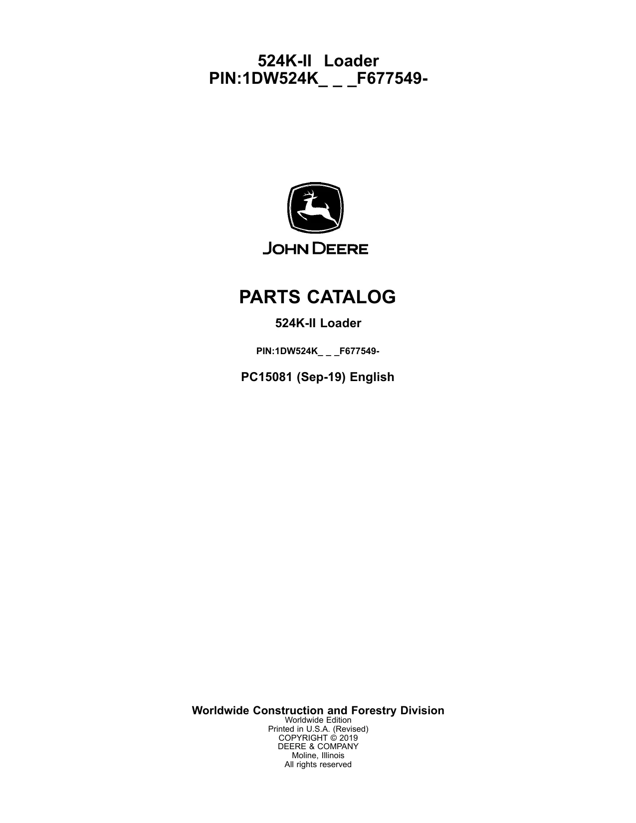 John Deere Loader 524K-II Parts Catalog_PC15081_09.2019_English