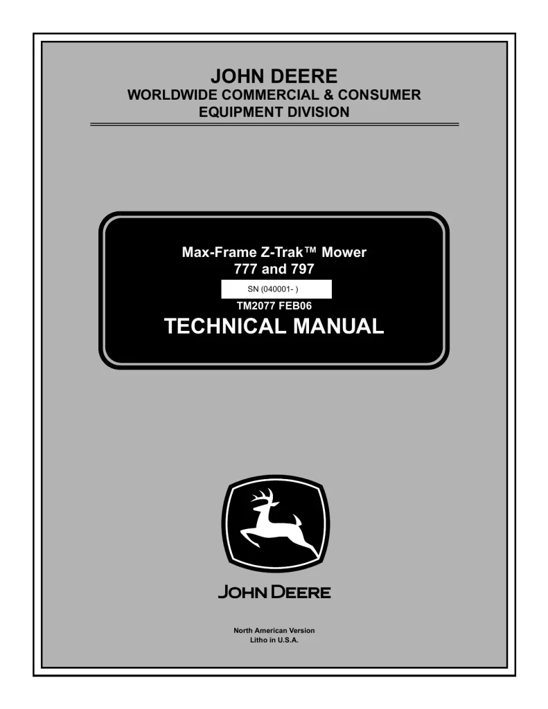 John Deere Max Frame Z-Trak Mower 777 797 tm2077 Technical Manual
