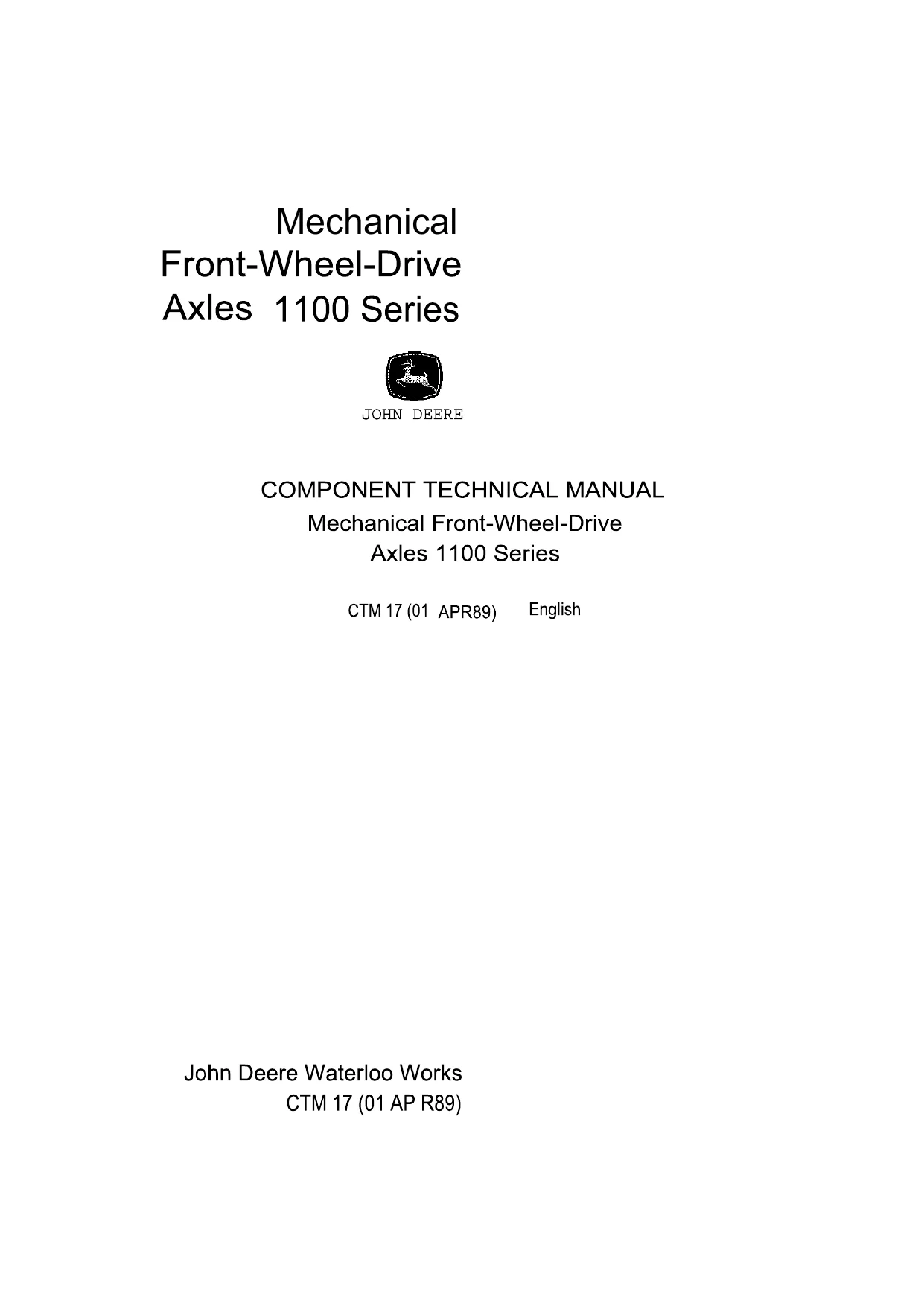 John Deere Mechanical Front Wheel Drive Axles 1100 Series ctm17 Technical Manual EN PDF smile January 7, 2026 Comments