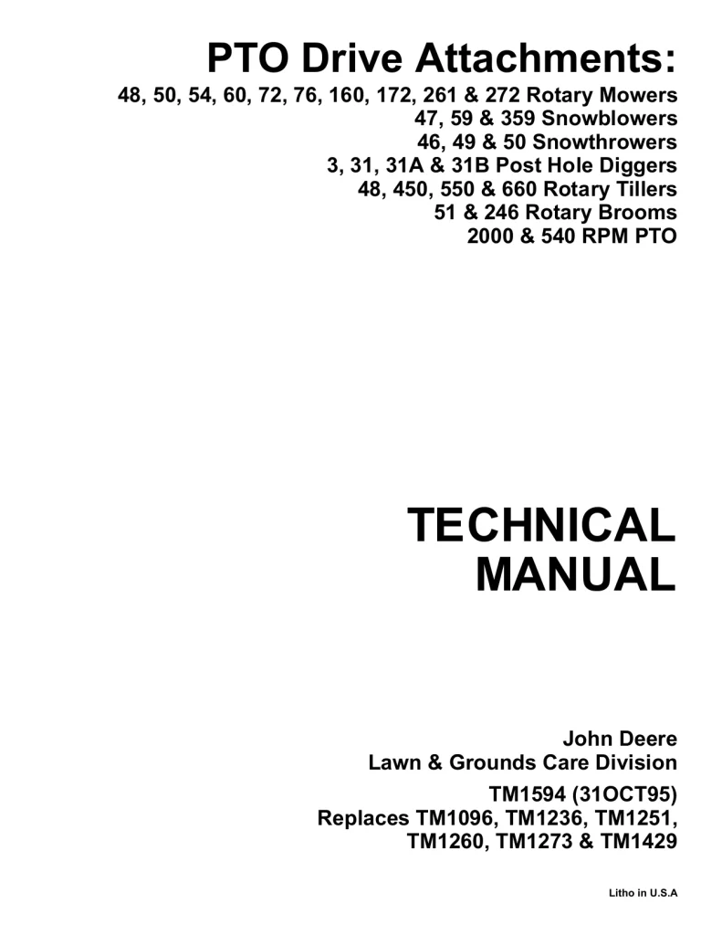 Instant download John Deere PTO Drive Attachments 48 -272 47-359 46-50 3-31B 48-660 51 246 2000 540 RPM PTO tm1594 Technical Manual!