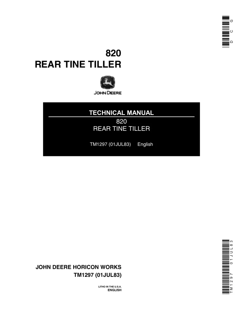 Instant download John Deere Rear Tine Tiller 820 tm1297 Technical Manual!