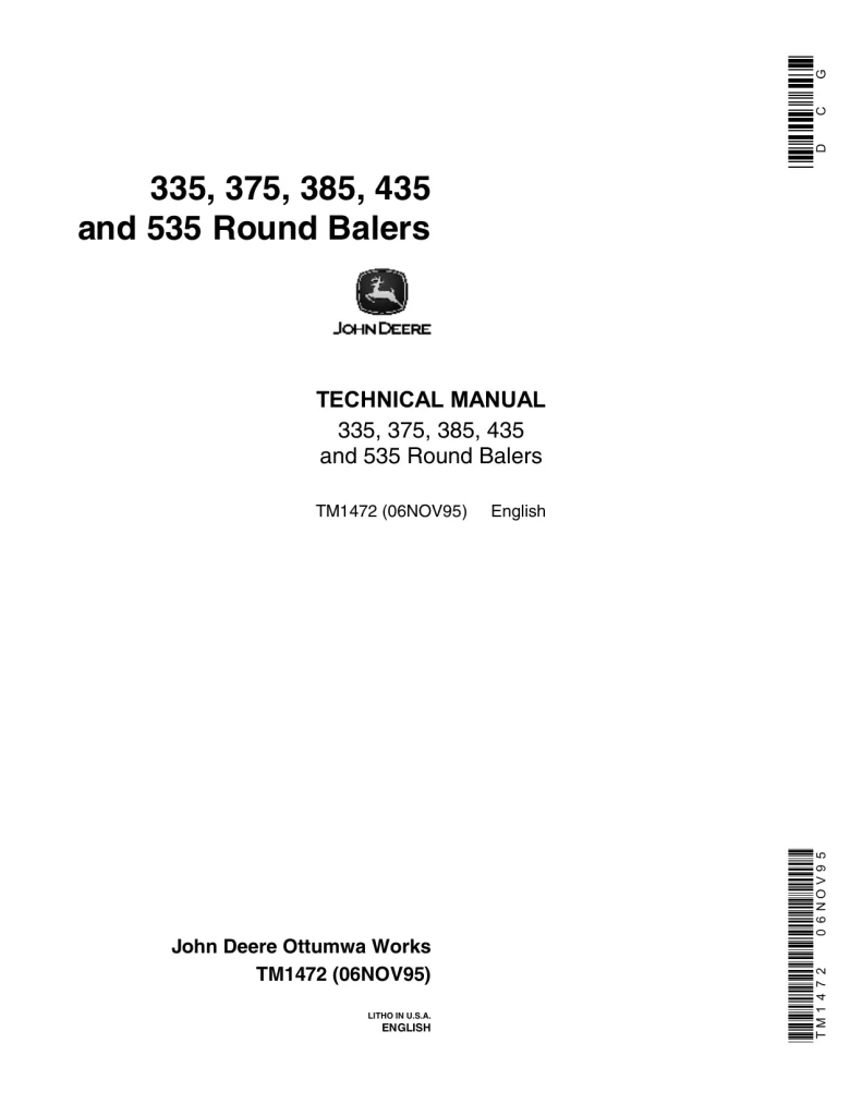 Instant download John Deere Roung Balers 335 375 385 435 535 tm1472 Technical Manual!