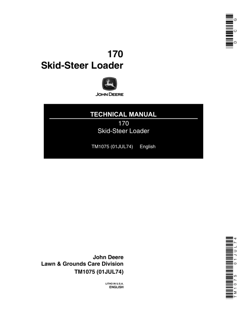 John Deere Skid Steer Loader 170 tm1075 Technical Manual