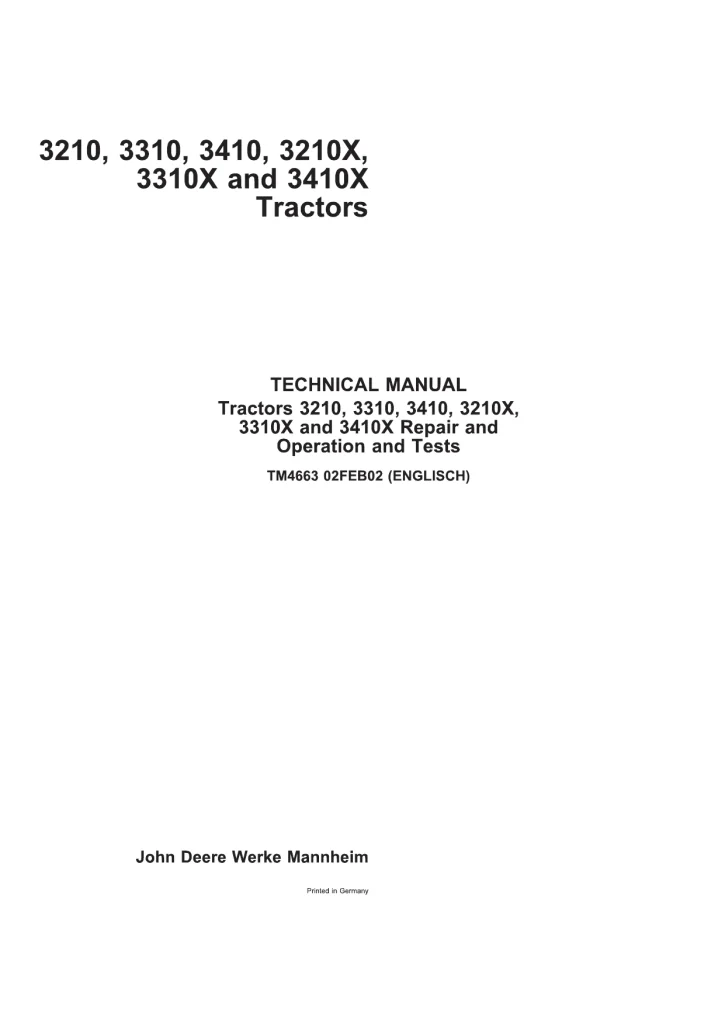 John Deere Tractors 3210 3310 3410 3210X 3310x 3410x Repair and Operation and Tests Manual