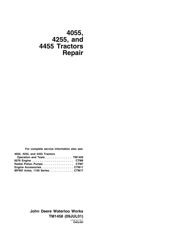 John Deere Tractors 4055 4255 4455 Repair Manual