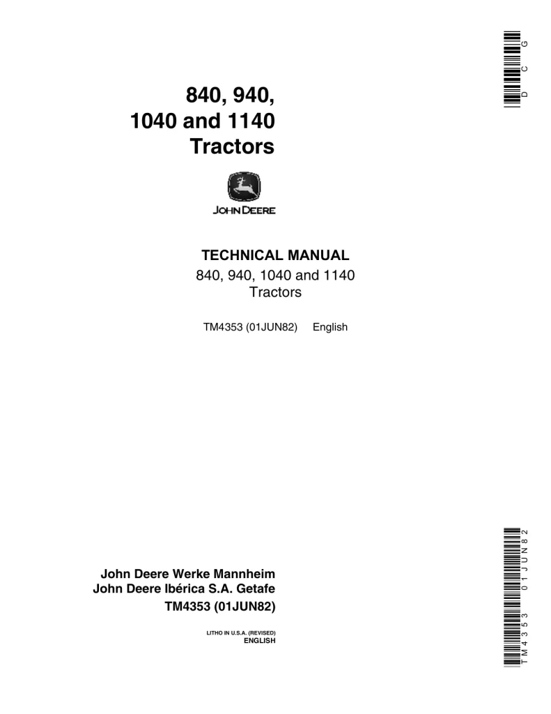 John Deere Tractors 840 940 1040 1140 Technical Manual