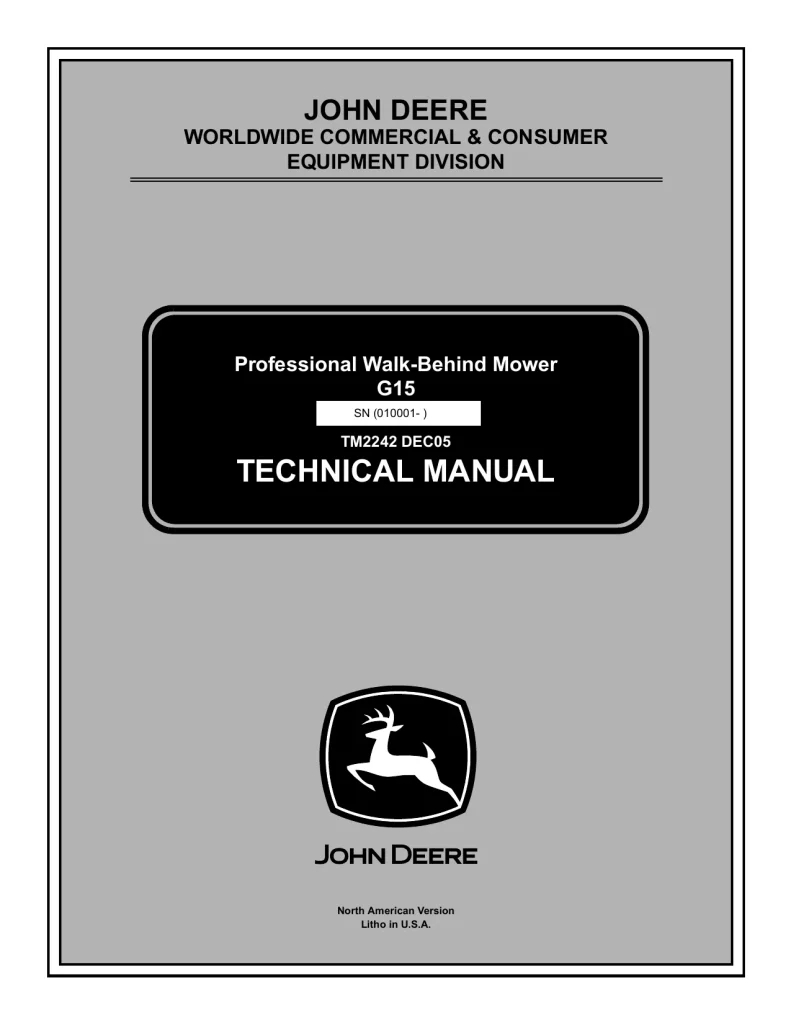 John Deere Walk Behind Mowers G15 tm2242 Technical Manual