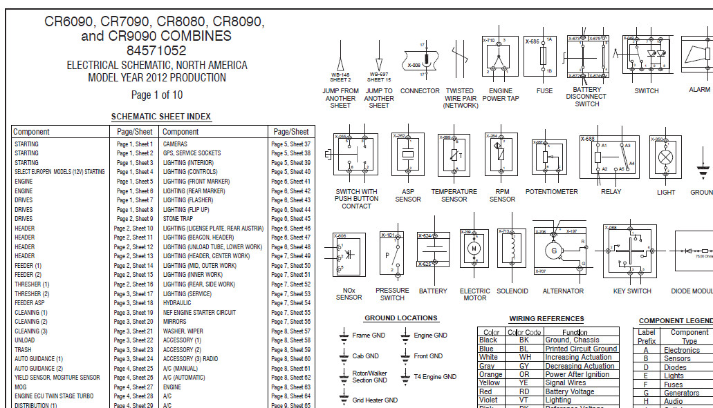 New Holland CR6090/CR7090/CR8080/CR8090/CR9090 Combines Electrical Schematic Manual