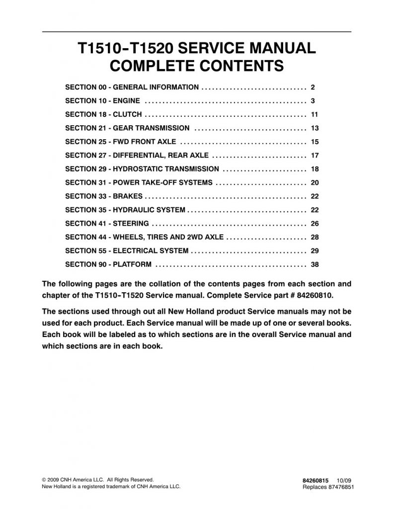 Instant download New Holland T1510/T1520 Tractor Service Repair Manual! A downloadable repair manual, also termed factory service manual, is a book of repair instructions that describes the maintenance, service and repair procedures for the complete vehicle. Its a digitally delivered repair book that covers all aspects of repair.