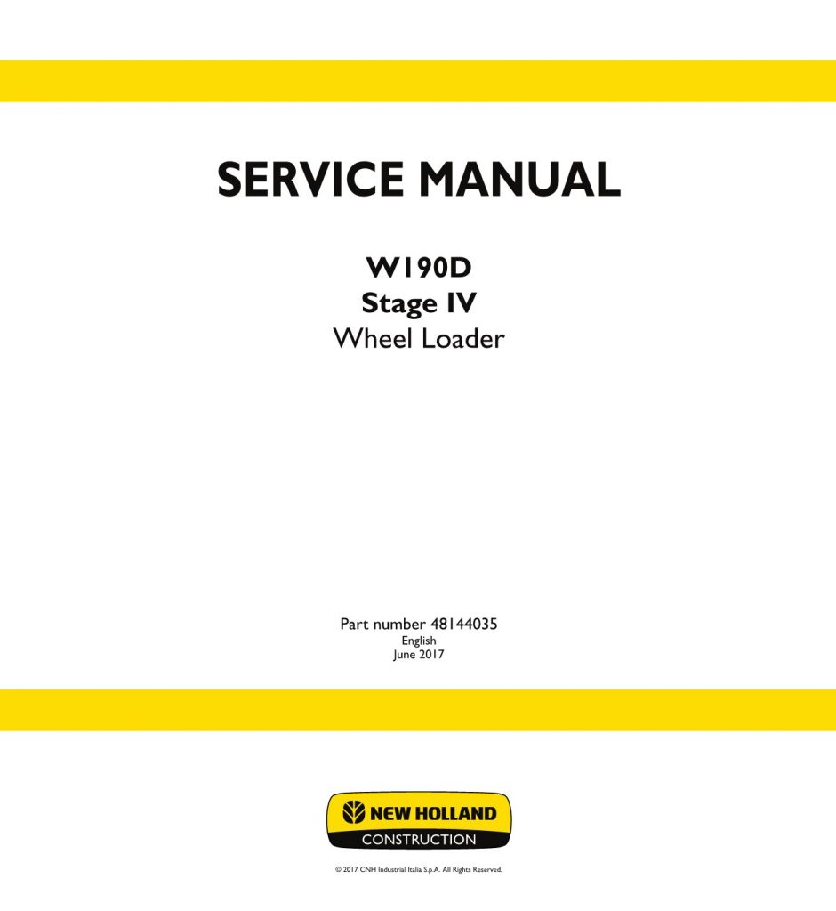 Instant download New Holland W190D Stage IV Wheel Loader Service Repair Manual! A downloadable repair manual, also termed factory service manual, is a book of repair instructions that describes the maintenance, service and repair procedures for the complete vehicle. Its a digitally delivered repair book that covers all aspects of repair.