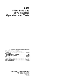 John Deere 8570, 8770, 8870, 8970 Tractors Operation and Tests Manual TM1550