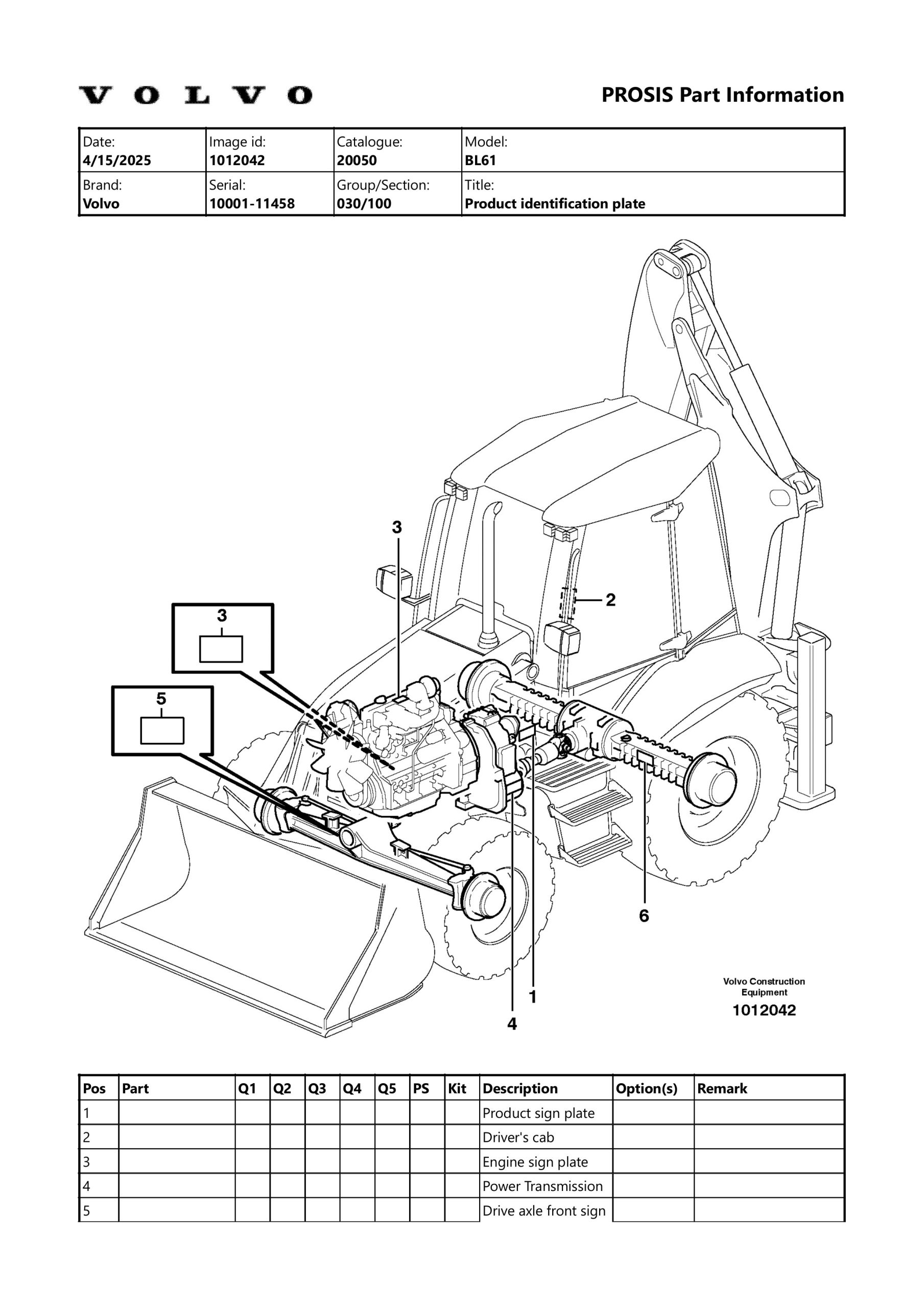 Volvo BL61 Backhoe Loaders Part Manual