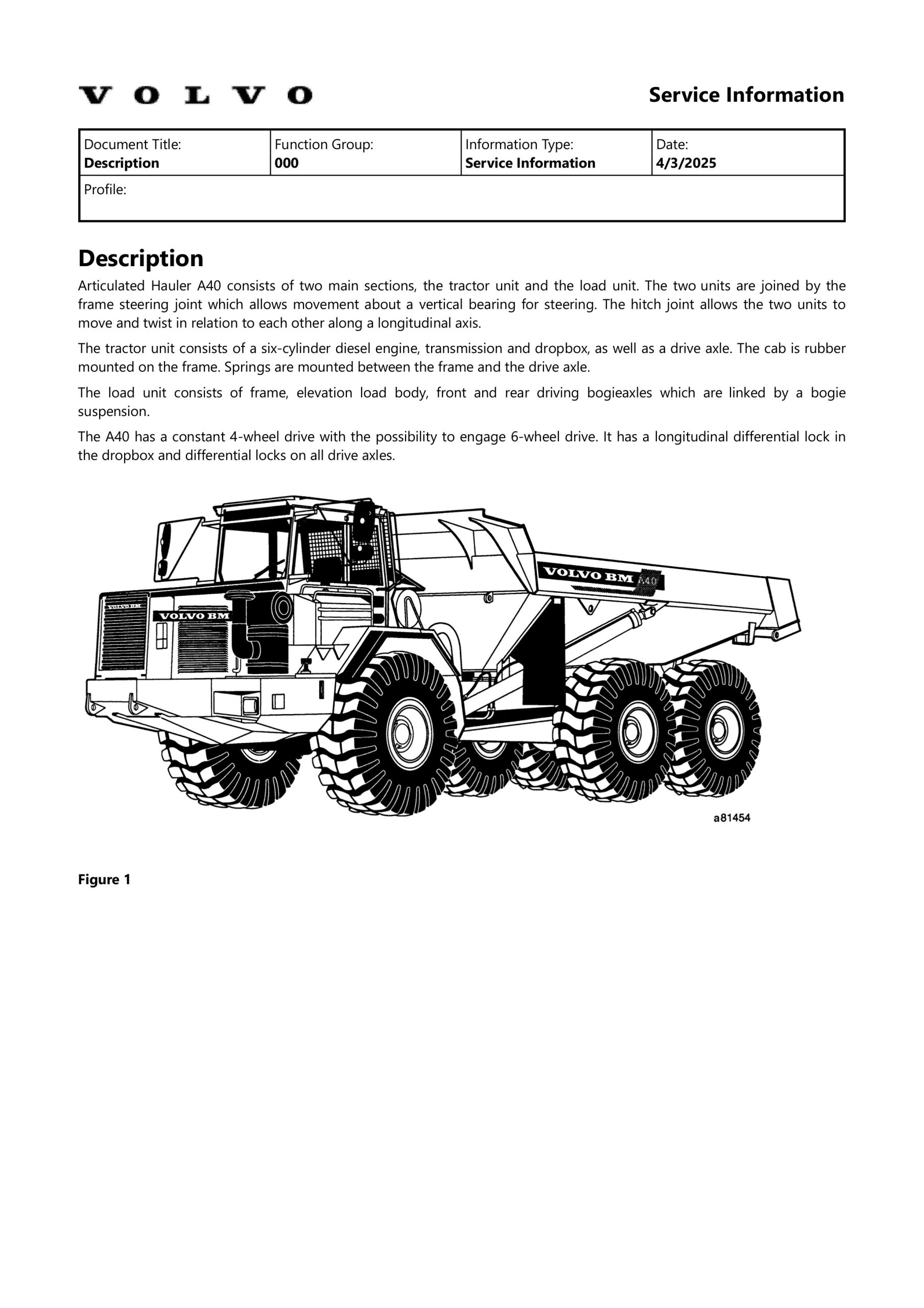 Volvo BM A40 Articulated Haulers Service Repair Manual
